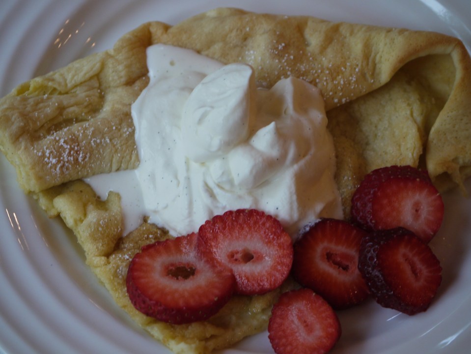 - divide the Dutch baby into wedges, then top each with whipped cream and berries.