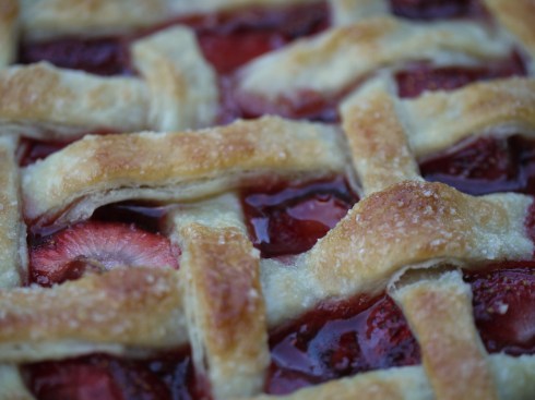 the canvas packs, heavily laden with strawberries, slowed our ride. both in great shape, even we gritted our teeth as we pedaled over the hilly streets. of course, we eventually made it back to my parent’s place. packs stuck to our shirts, shirts stuck to our skin. we looked at each other, grinned and unloaded the berries. i gave most of them to Susan, keeping just enough for me, mom and dad. i didn’t bake much then, but wish i had. because i would have been able to make the amazingly rich and flavorful strawberry pie recipe that follows, courtesy of Emily and Melissa Elsen of Four & Twenty Blackbirds.